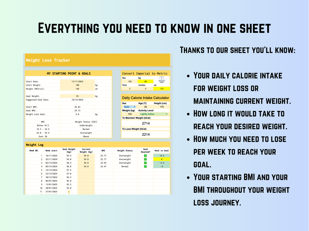 Use our simple spreadsheet template and NEVER go off track from your weight loss goals πͺ
